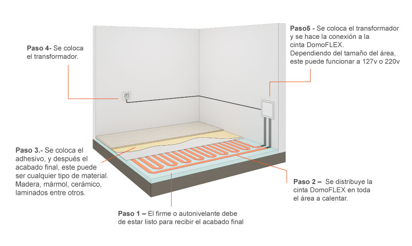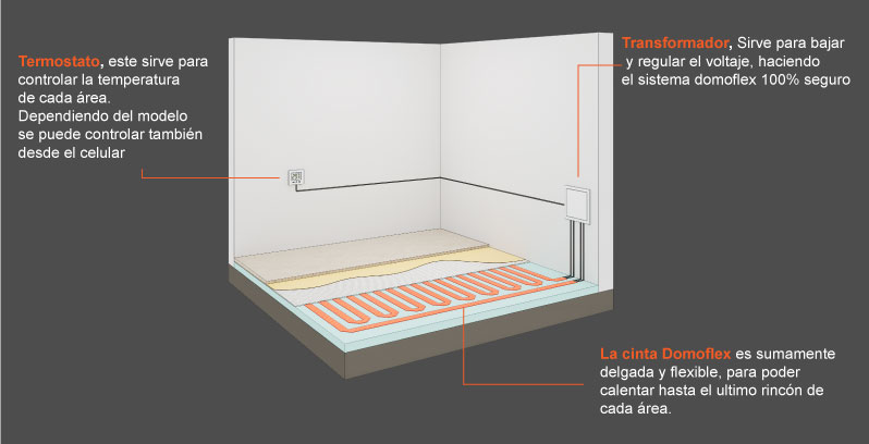 La cinta Domoflex se instalan bajo el piso y emiten calor de manera